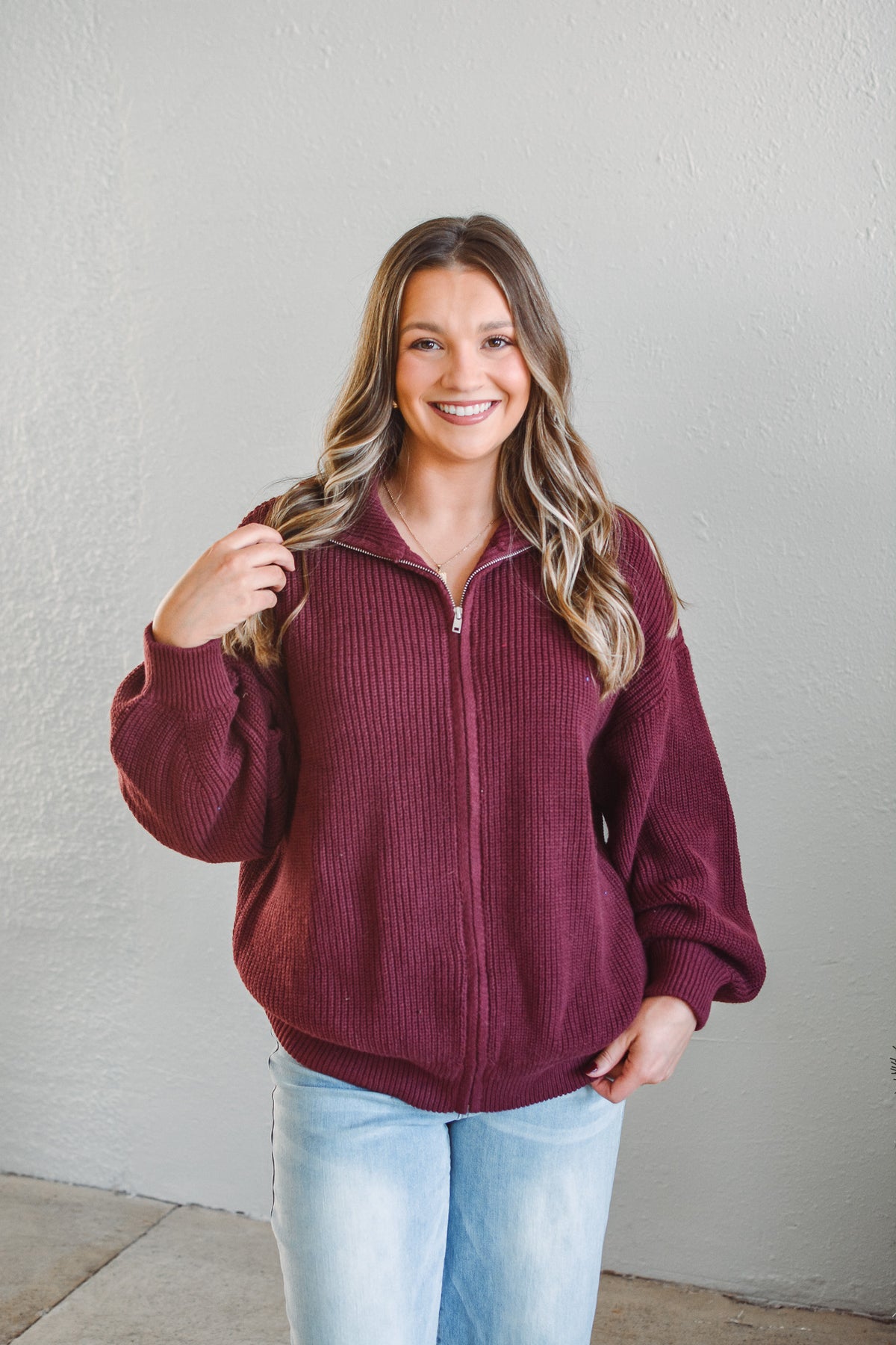 Stowe Burgundy Zip Sweater